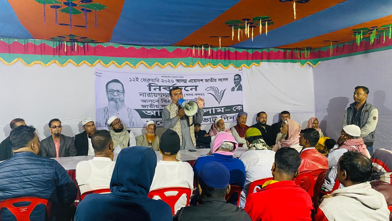 নিজস্ব প্রতিবেদক, নারায়ণগঞ্জ | ২৪ জানুয়ারি, ২০২৬ আসন্ন ১২ ফেব্রুয়ারি ত্রয়োদশ জাতীয় সংসদ নির্বাচনকে ঘিরে নারায়ণগঞ্জ-৫ (সদর-বন্দর) আসনে বইছে তীব্র নির্বাচনী হাওয়া। ২১ জানুয়ারি প্রতীক বরাদ্দের পর প্রার্থীরা এখন মাঠে। এই আসনের ১৩ জন প্রার্থীর মধ্যে তিনজনকে নিয়ে সাধারণ ভোটারদের মধ্যে সবচেয়ে বেশি আলোচনা চলছে। ‘ধানের শীষ’, ‘ফুটবল’ এবং ‘দেওয়াল ডিটেইলস